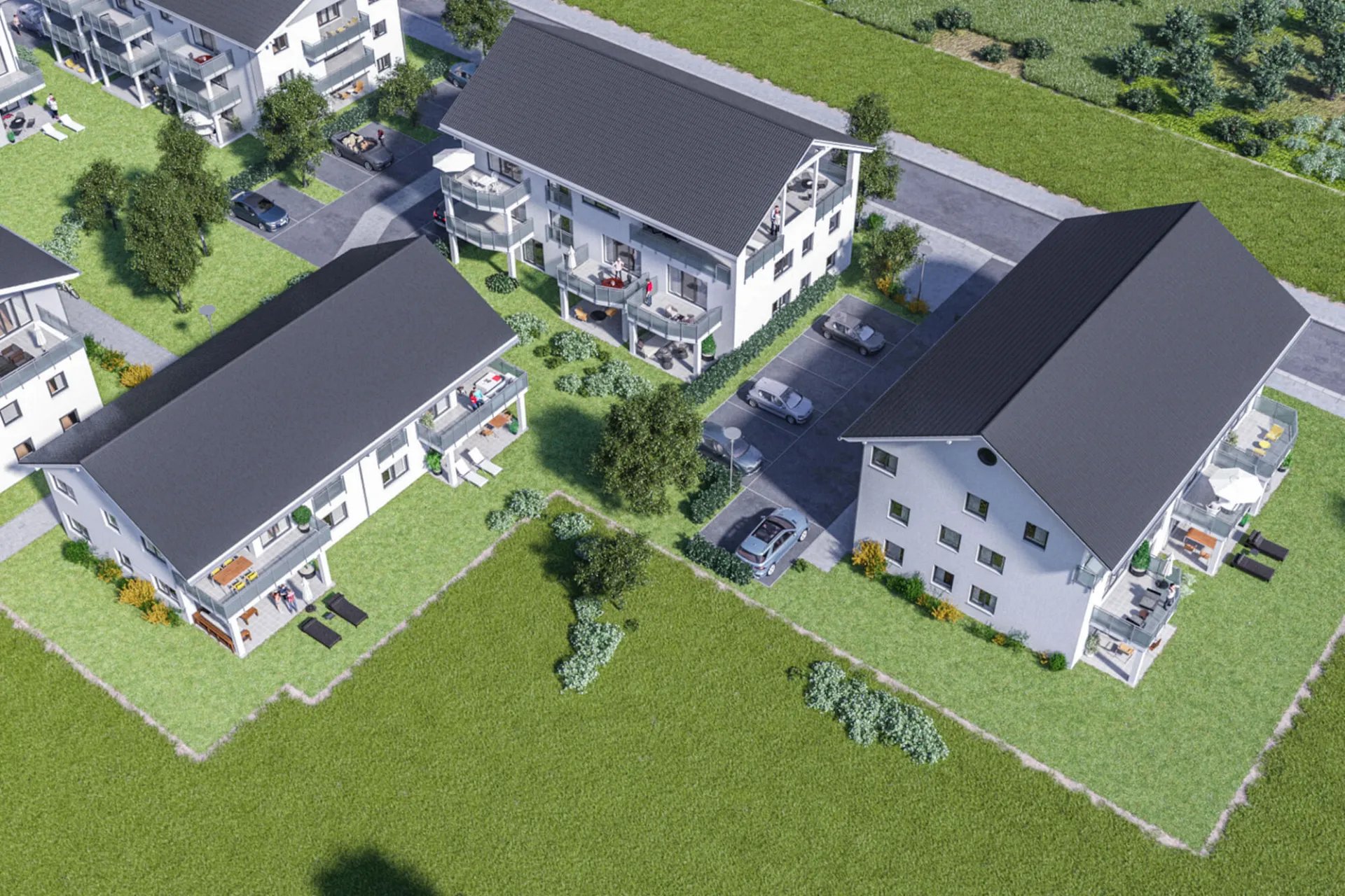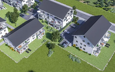 Projektbeschreibung: Neubau von 25 Eigentumswohnungen und 8 Gewerbeeinheiten mit nachhaltiger Energieversorgung und zentraler Lage